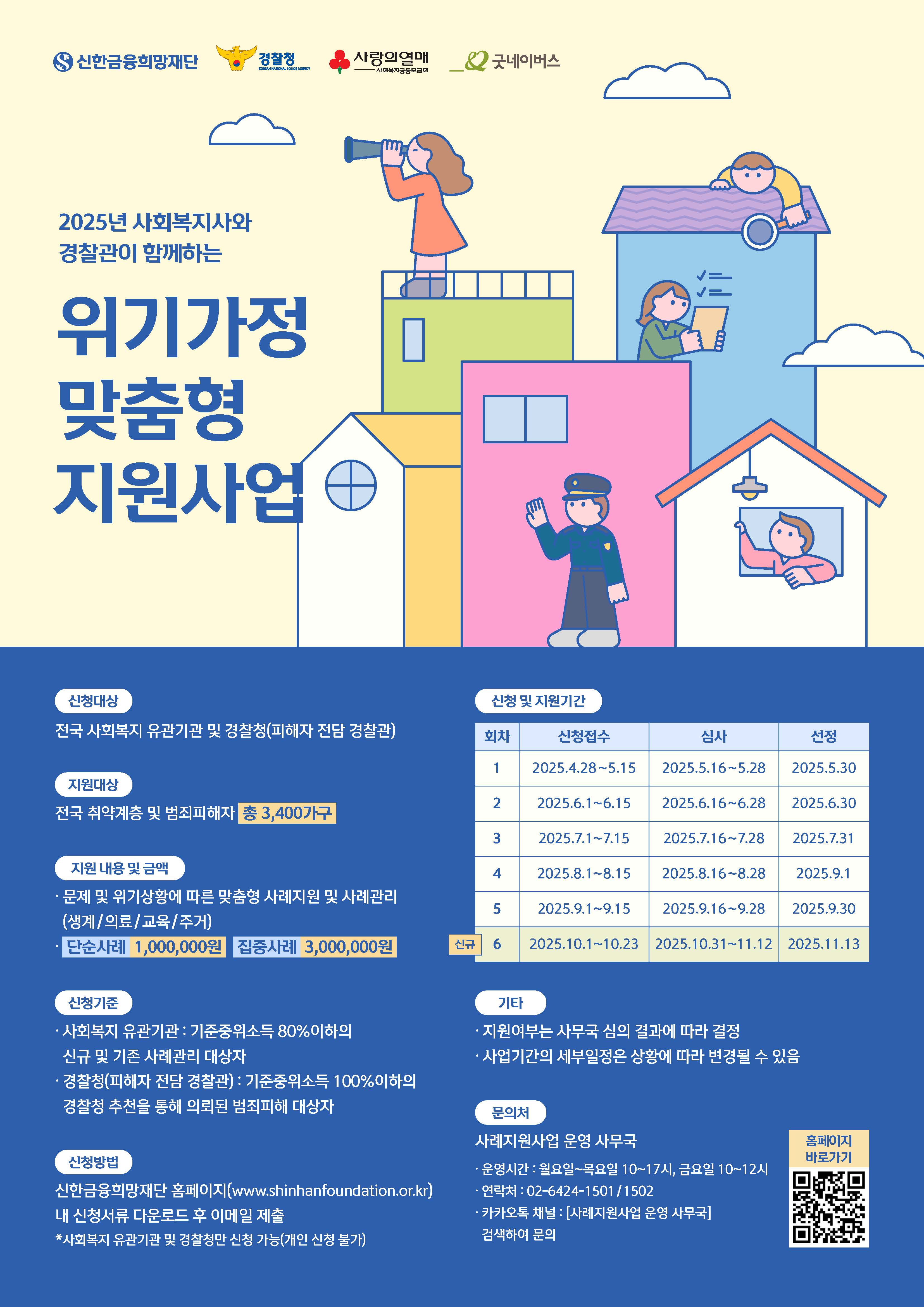 [사회복지법인 굿네이버스] 2025년 사회복지사와 경찰관이 함께하는위기가정 맞춤형 지원사업 공고문(5,6회차 모집)
