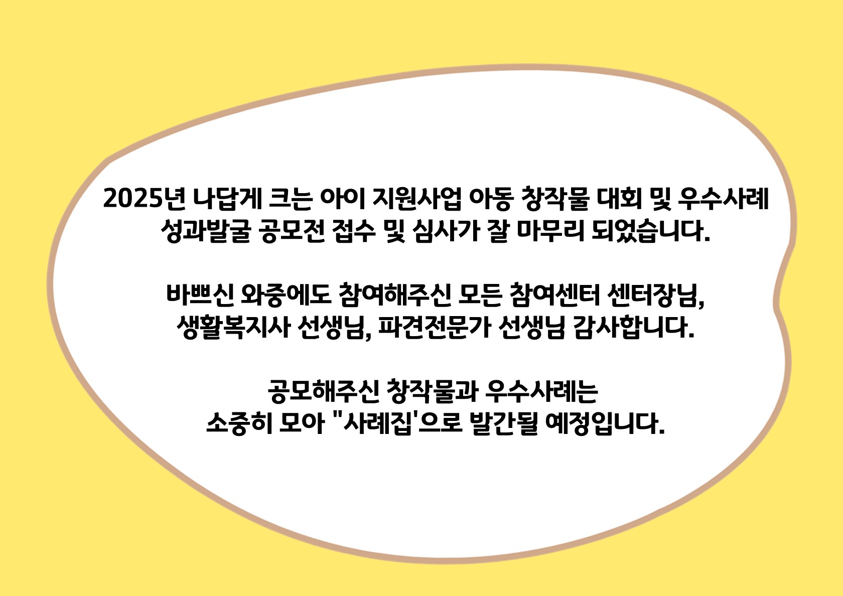 [나답게 크는 아이 지원사업] 2025년 아동 창작물 공모전 및 우수사례 성과발굴 공모전 심사 결과 안내