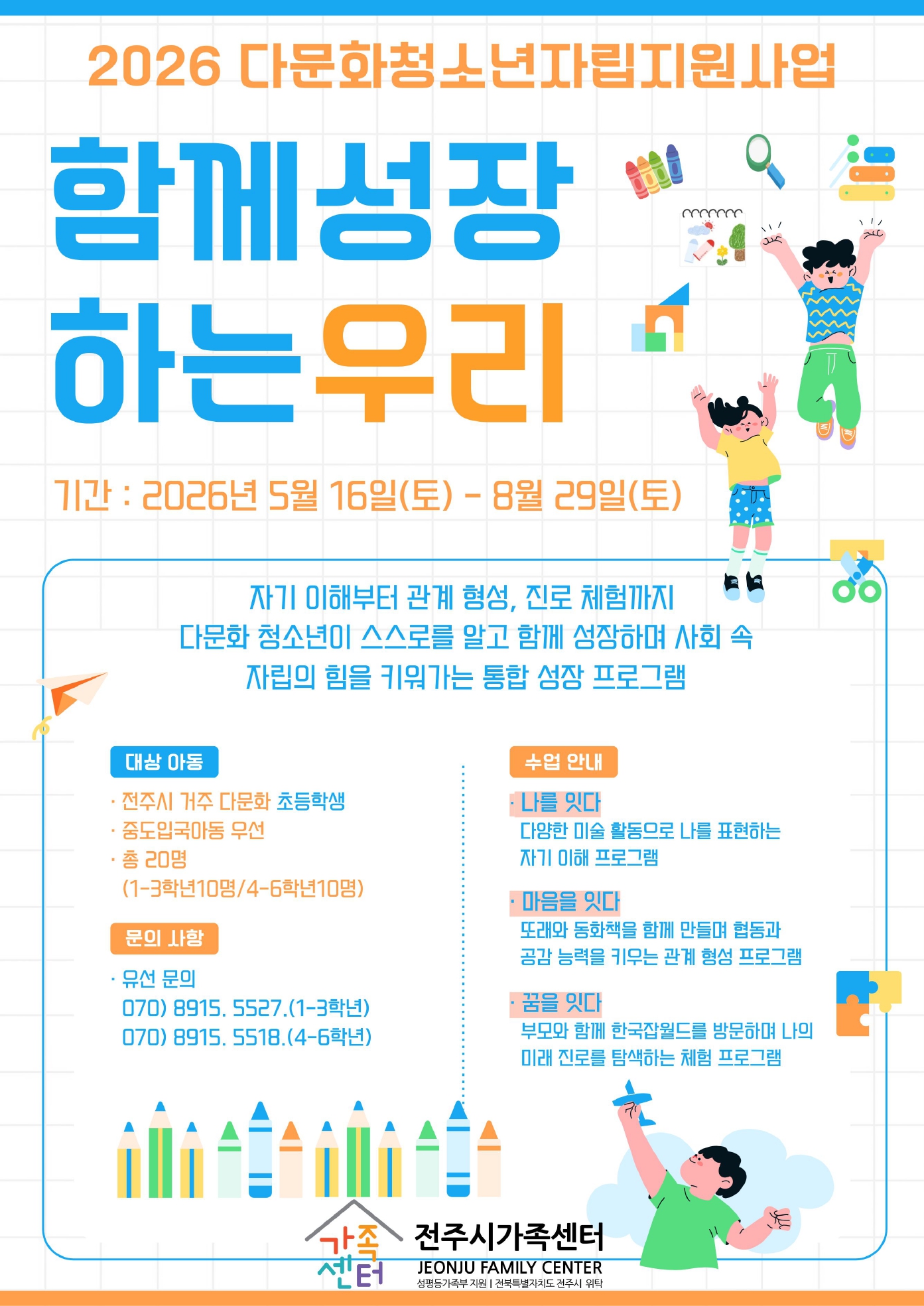 [전주시가족센터] 다문화청소년자립지원사업 '함께 성장하는 우리' (2026.4.20 ~ 2026.5.15)